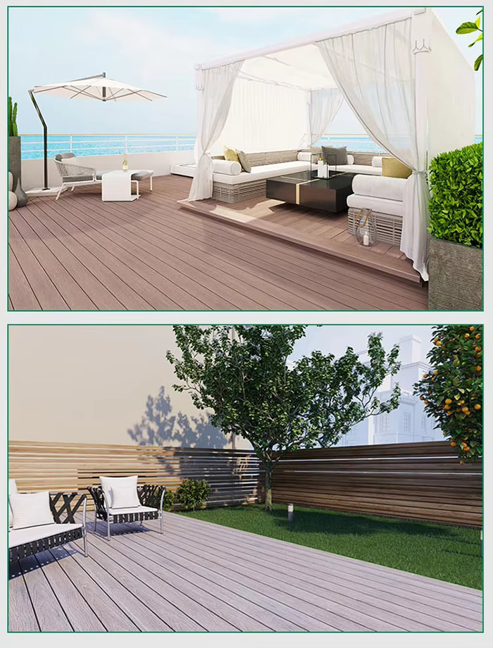 Sàn WPC (Wood Plastic Composite) là loại sàn mới thân thiện với môi trường được làm từ sợi gỗ hoặc sợi tre làm nguyên liệu cốt lõi, được kết hợp với nhựa PVC, chất chống cháy, v.v. thông qua quá trình nhiệt độ cao và áp suất cao. Cấu trúc của nó được chia thành bốn lớp: lớp chống mài mòn (lớp phủ UV), lớp trang trí vân gỗ/hạt đá, lớp vật liệu nền được gia cố bằng sợi và lớp im lặng. Nó có cả kết cấu của gỗ thật và hiệu suất chống thấm nước và chống ẩm của nhựa, phù hợp để trang trí sàn toàn cảnh trong nhà và ngoài trời.